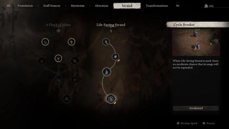 When maxed out, the Life-Saving Strand spell will recharge four gourd uses, will give you some mana back, and it will have a chance to revive you without consuming the spell’s charge, which has a pretty lengthy cooldown.