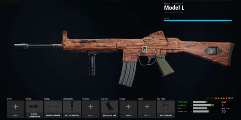 Another gun that is an absolute laser beam just like the XM4, the Model L can be extremely powerful without using a massive amount of attachments, however, we will add extra suggestions for if you are to use it with the Gunfighter Wildcard.